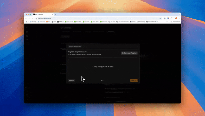 <figure><img src="https://2986926806-files.gitbook.io/~/files/v0/b/gitbook-x-prod.appspot.com/o/spaces%2FUBzWA2LkfjbdaffIaGlN%2Fuploads%2FEv4yJBpoAAPX1zcOI3Mh%2Fplaybook_segmentation_upload.gif?alt=media&#x26;token=0732bda4-2d22-42cb-b549-49b12e1fc6ee" alt="" width="563"><figcaption></figcaption></figure>