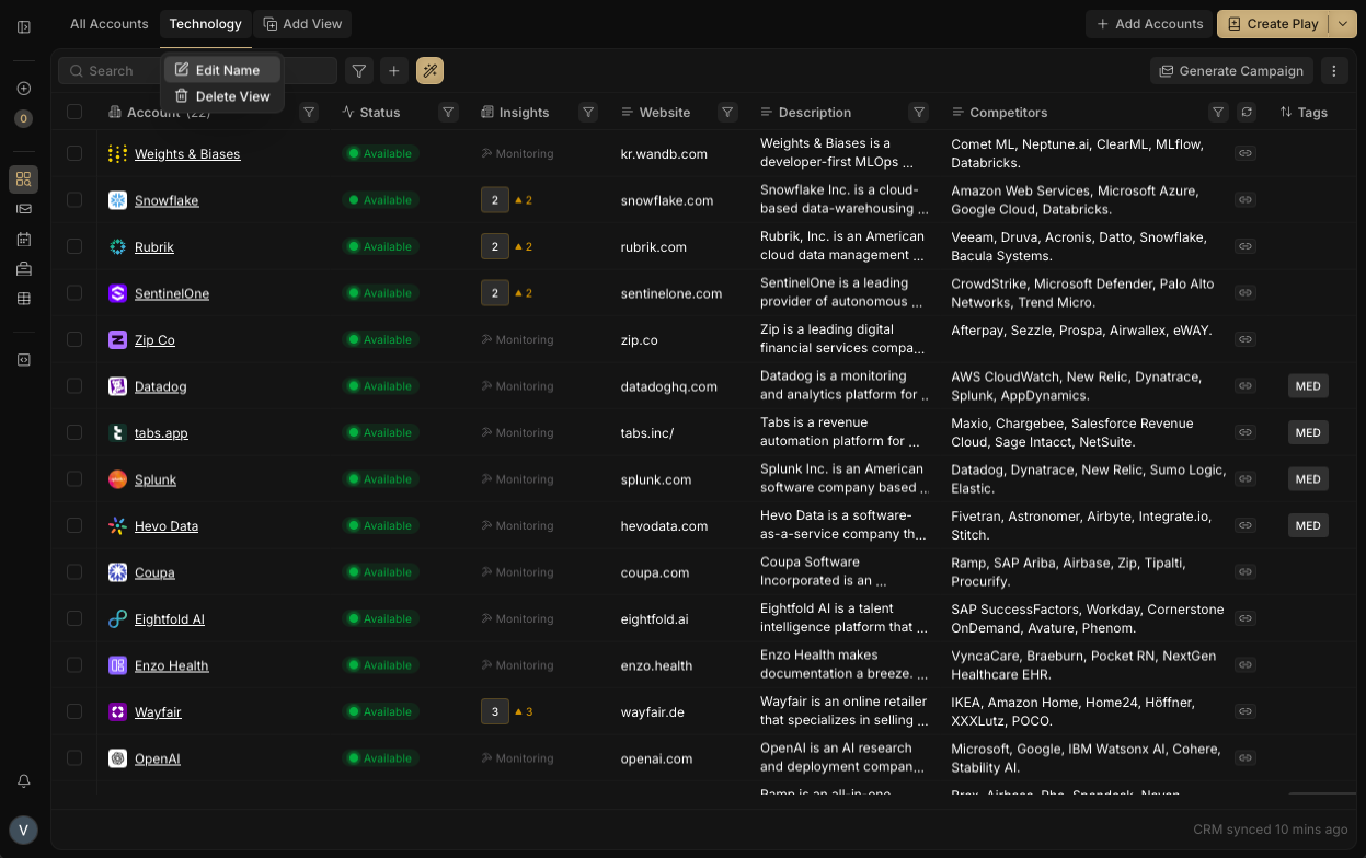 Views in Rox allow you to segment your agent list into specific groups and customize columns and filters for each group. This powerful feature enables tailored data management for better organization and efficiency. Follow this guide to add, edit, and delete views.