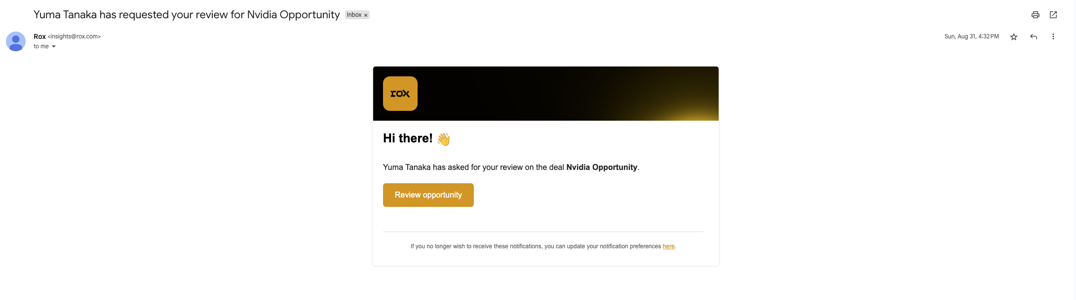 * Post that, the opportunity will be marked under review. Reviewers **get email and in-app notifications** when their review is required.